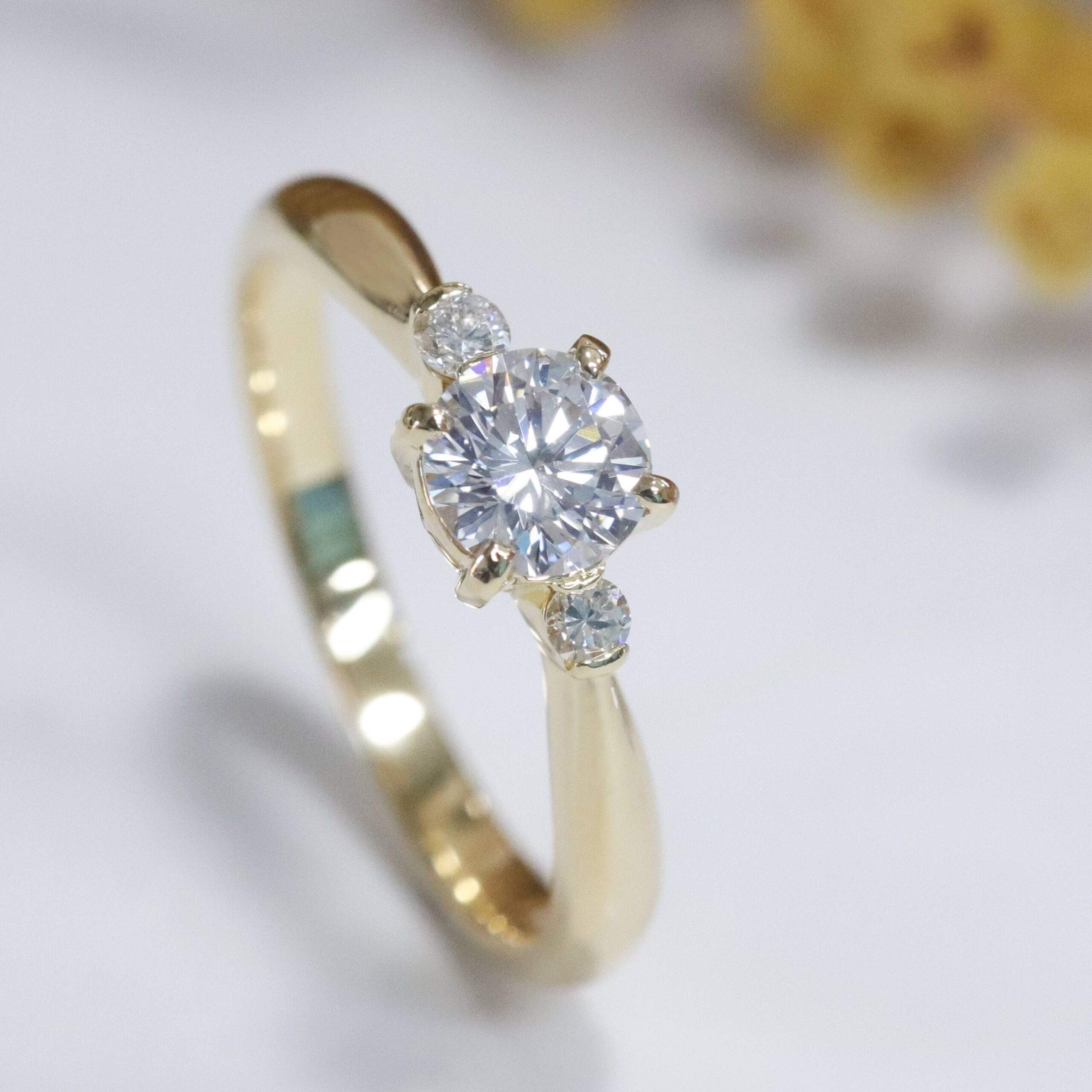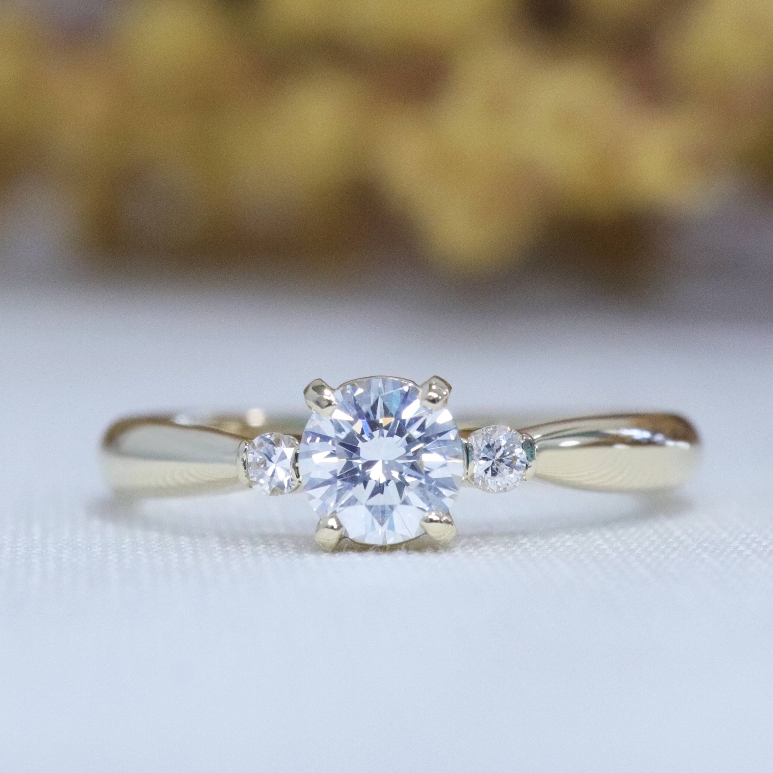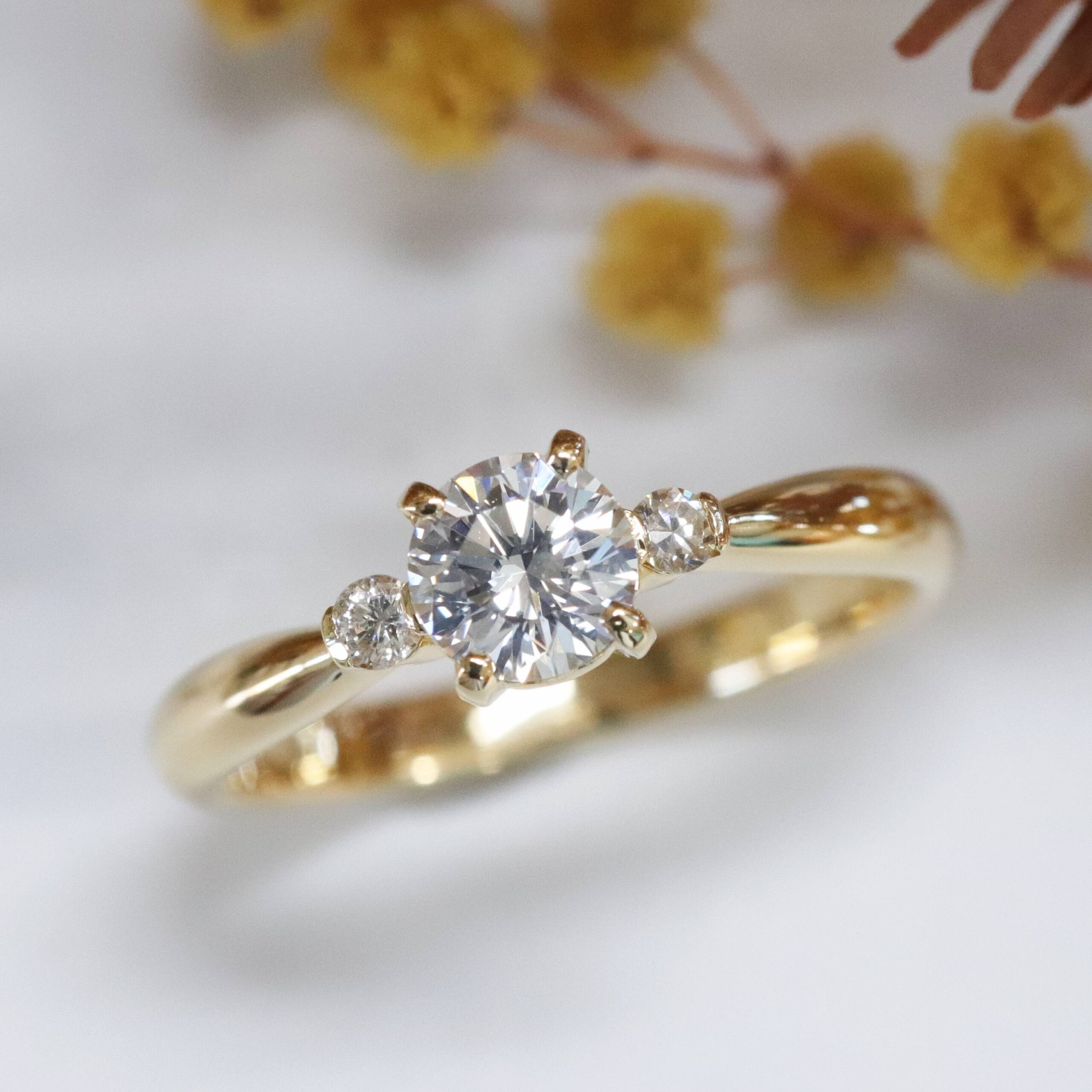 あたたかな輝きが指元にやさしく溶け込むイエローゴールドの婚約指輪です。