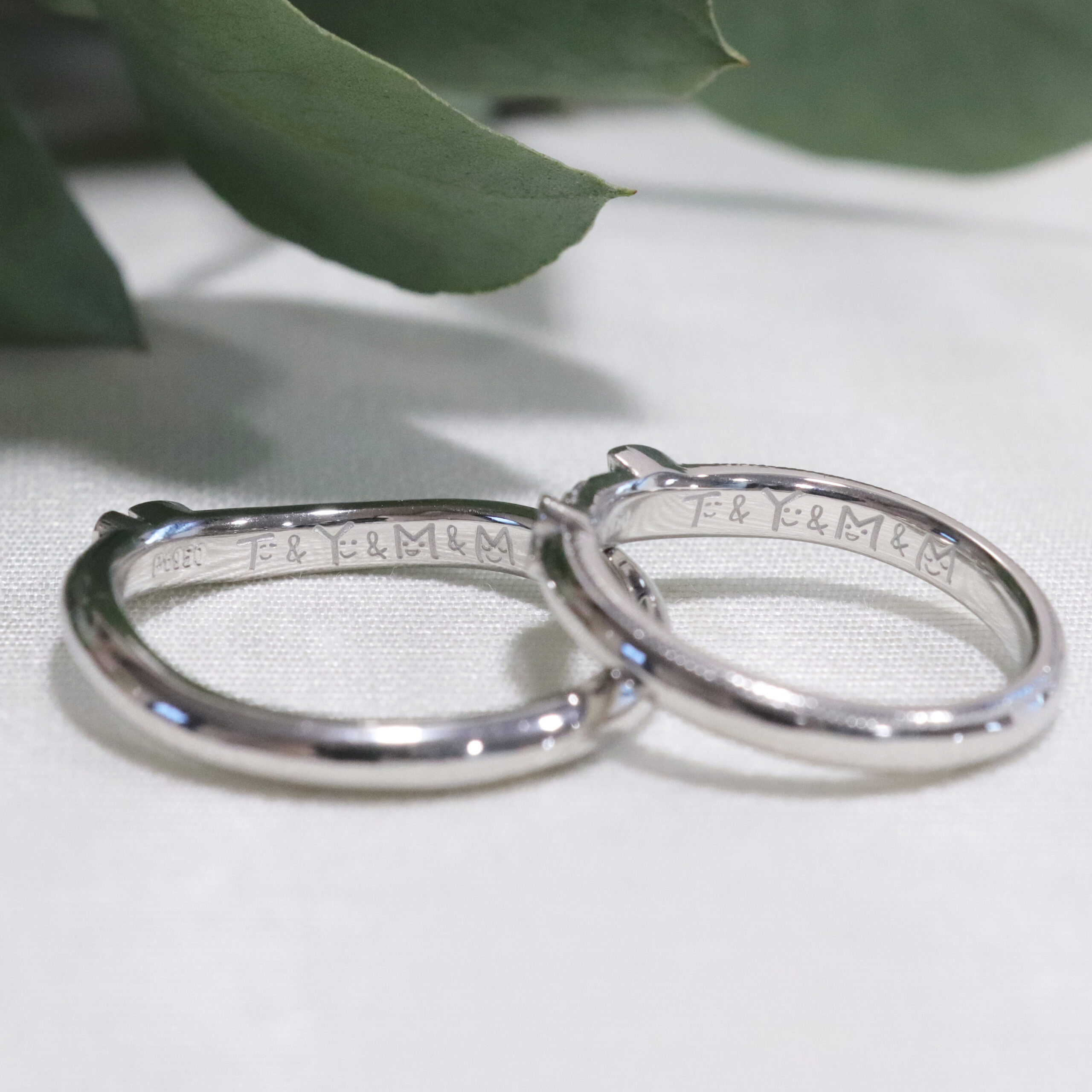 内側にはお顔がついたご家族のイニシャルをお子様が手書きされ、そのまま刻印としてお入れしました。