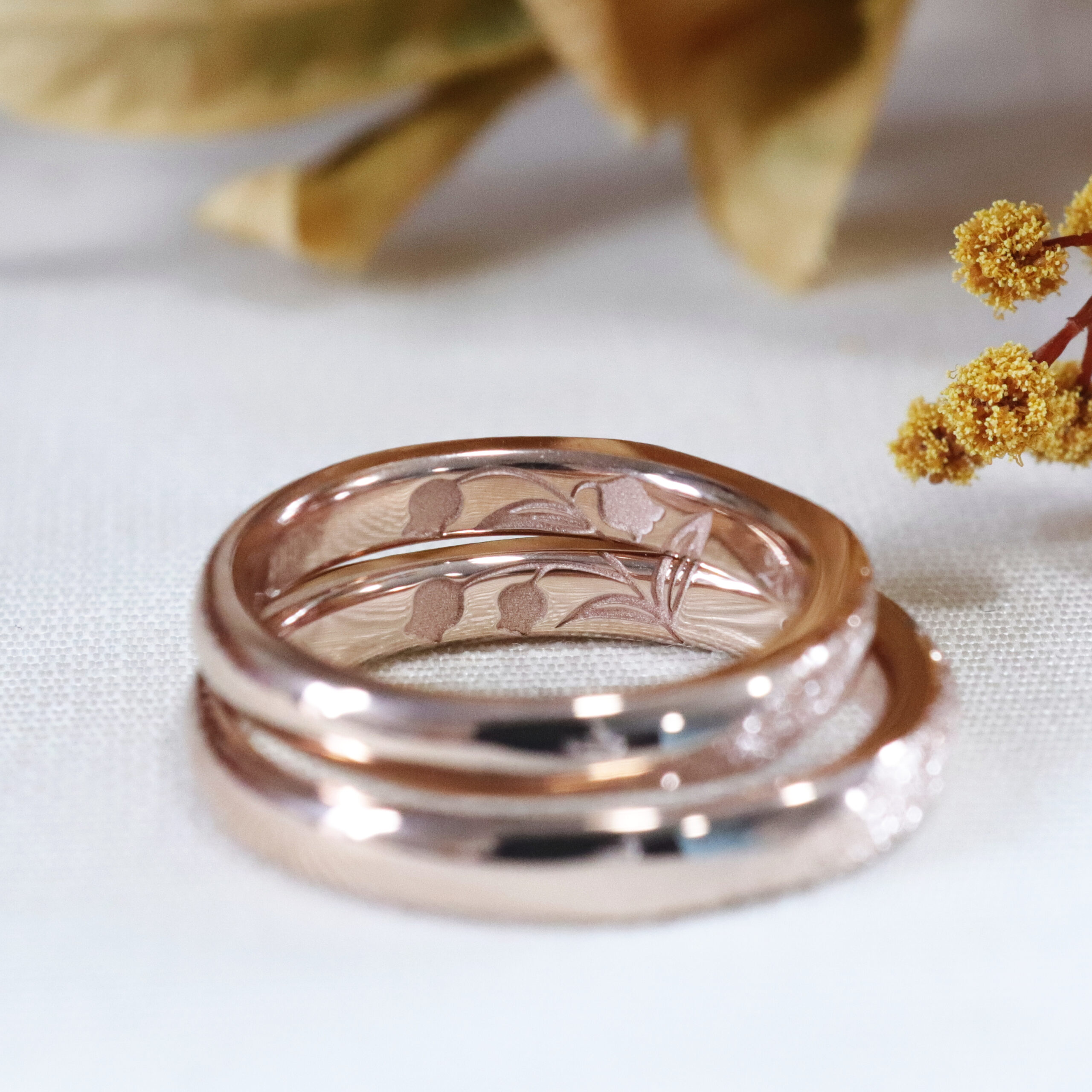 内側にはおふたりの思い出の花であるサンダーソニアの刻印を2本重ねてお入れしました。