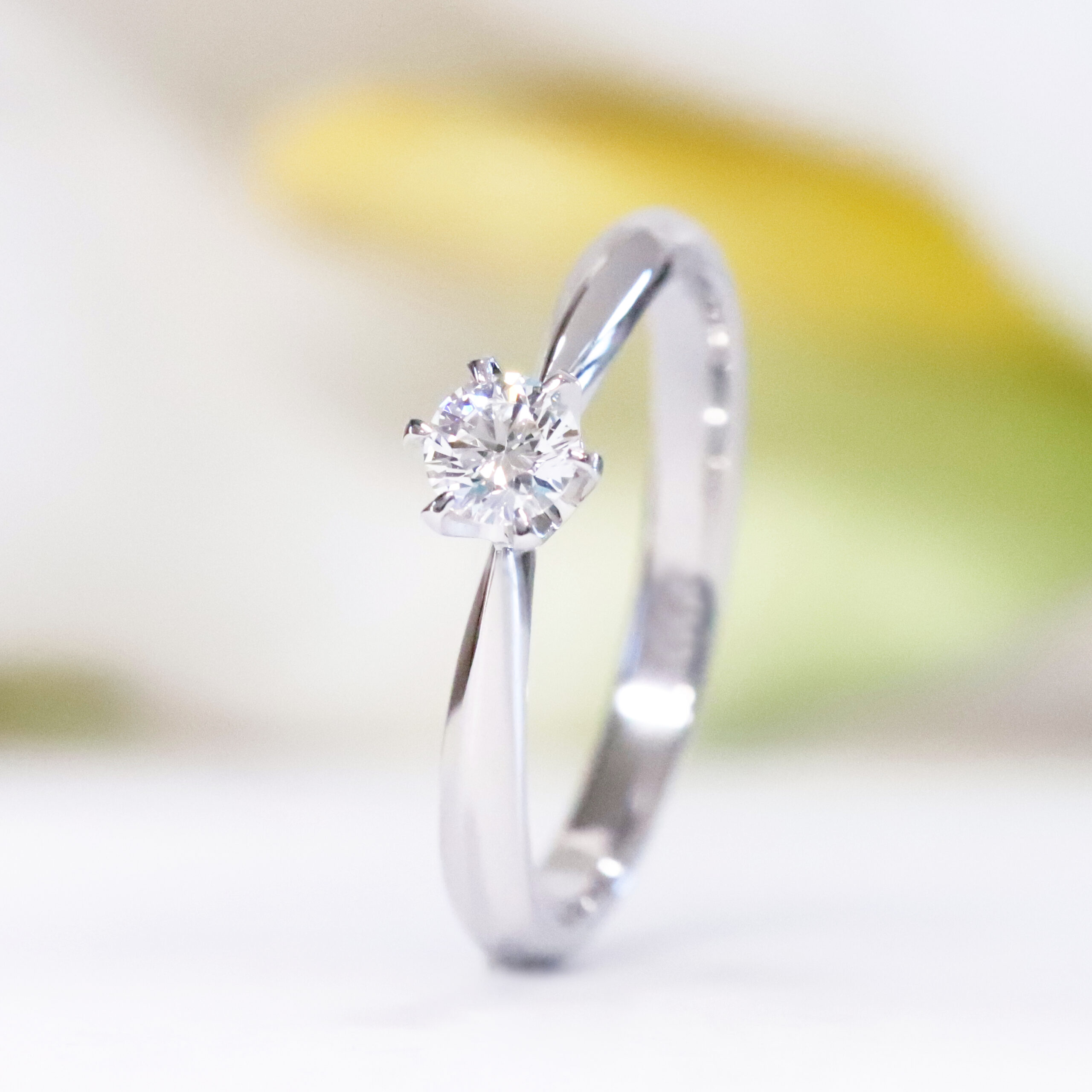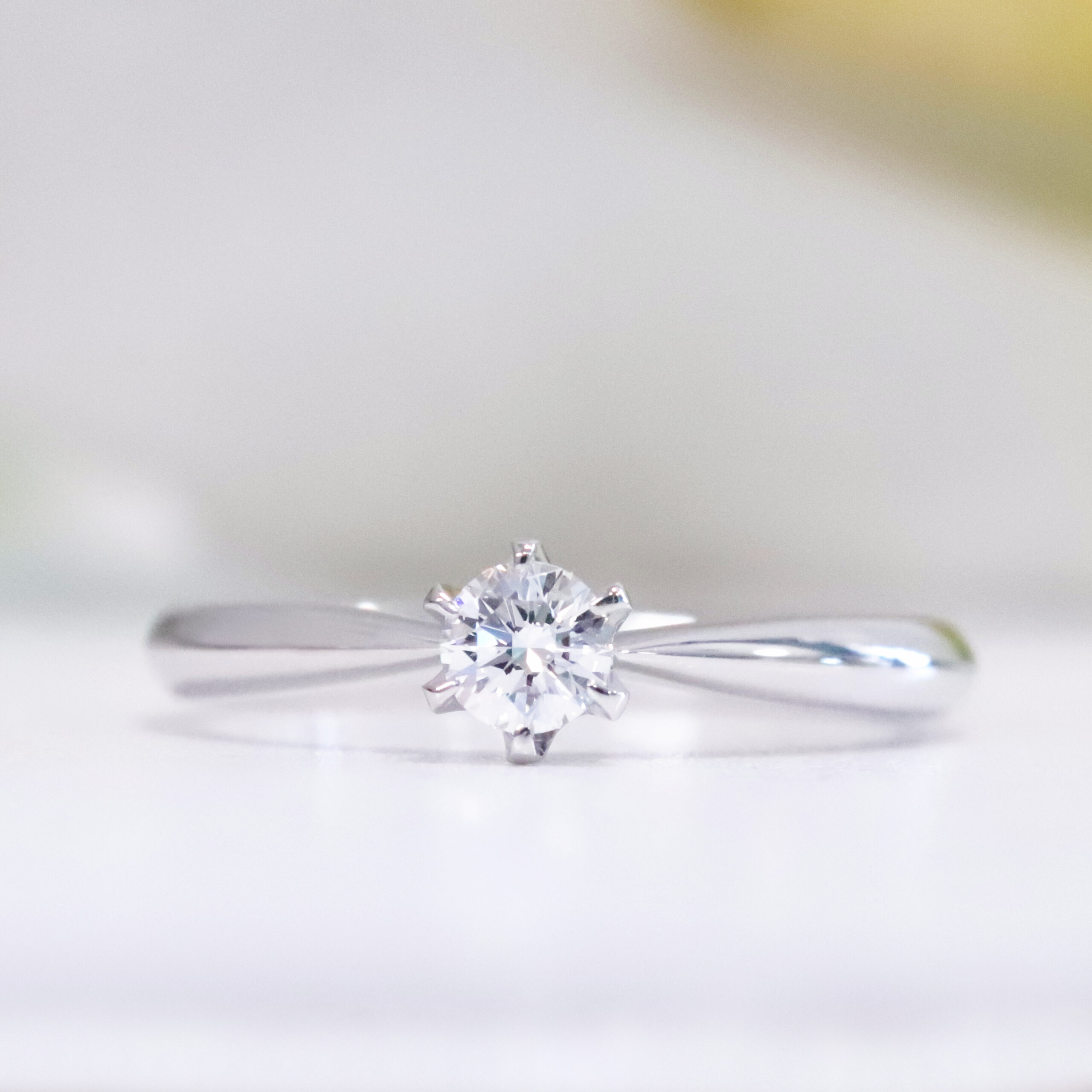 シンプルな6本爪は婚約指輪の王道のデザインで結婚指輪との重ね着けもしやすく、人気のデザインです。