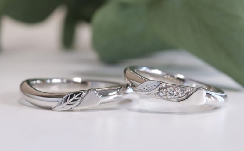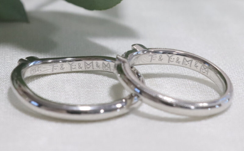 奥様とご主人様、おふたりのリングを重ねて名前を彫り込みました。