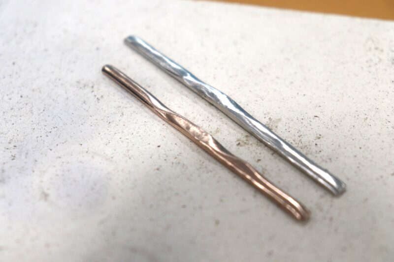芯金という丸い棒に通して叩いて、指輪の内側をきれいな丸に整える工程も