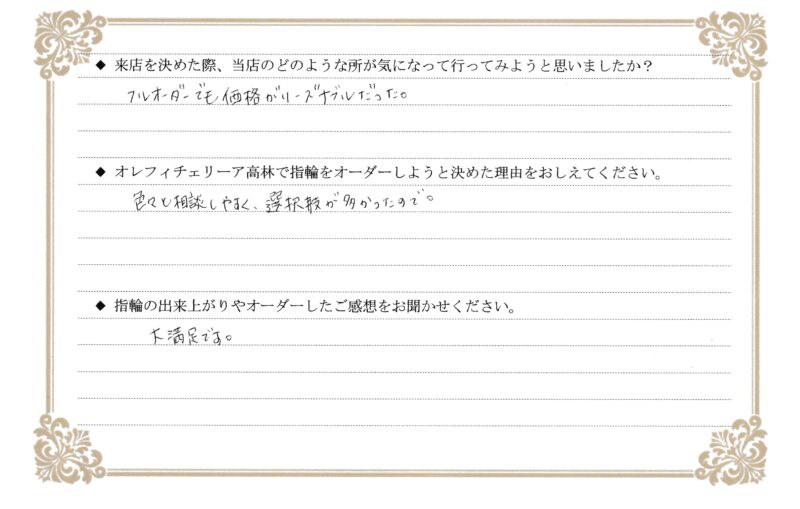 ◆オレフィチェリーア高林で指輪をオーダーしようと決めた理由をおしえてください。