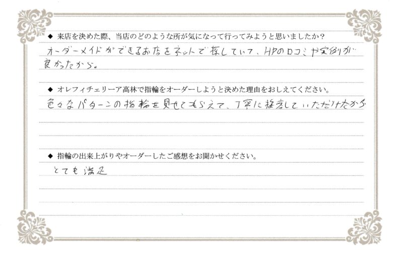 ◆オレフィチェリーア高林で指輪をオーダーしようと決めた理由をおしえてください。
