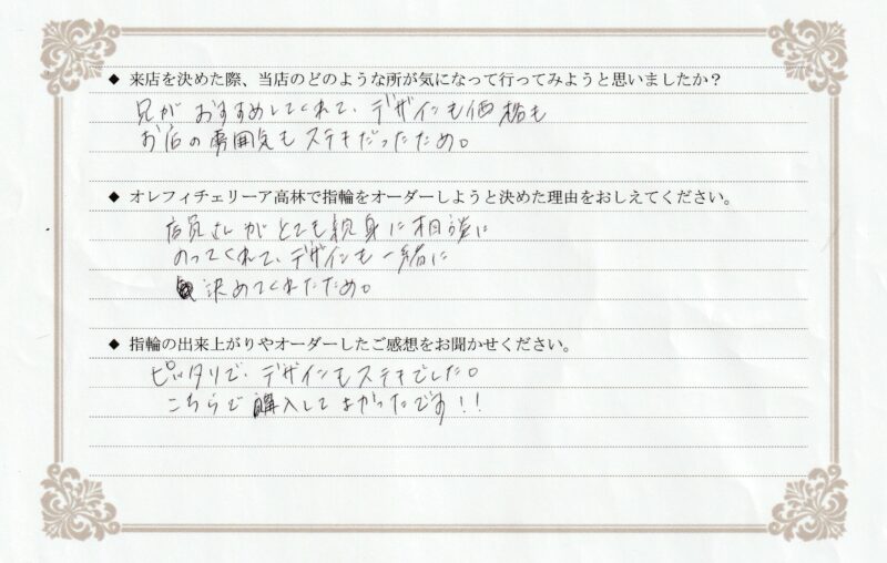 オレフィチェリーア高林で指輪をオーダーしようと決めた理由をおしえてください。